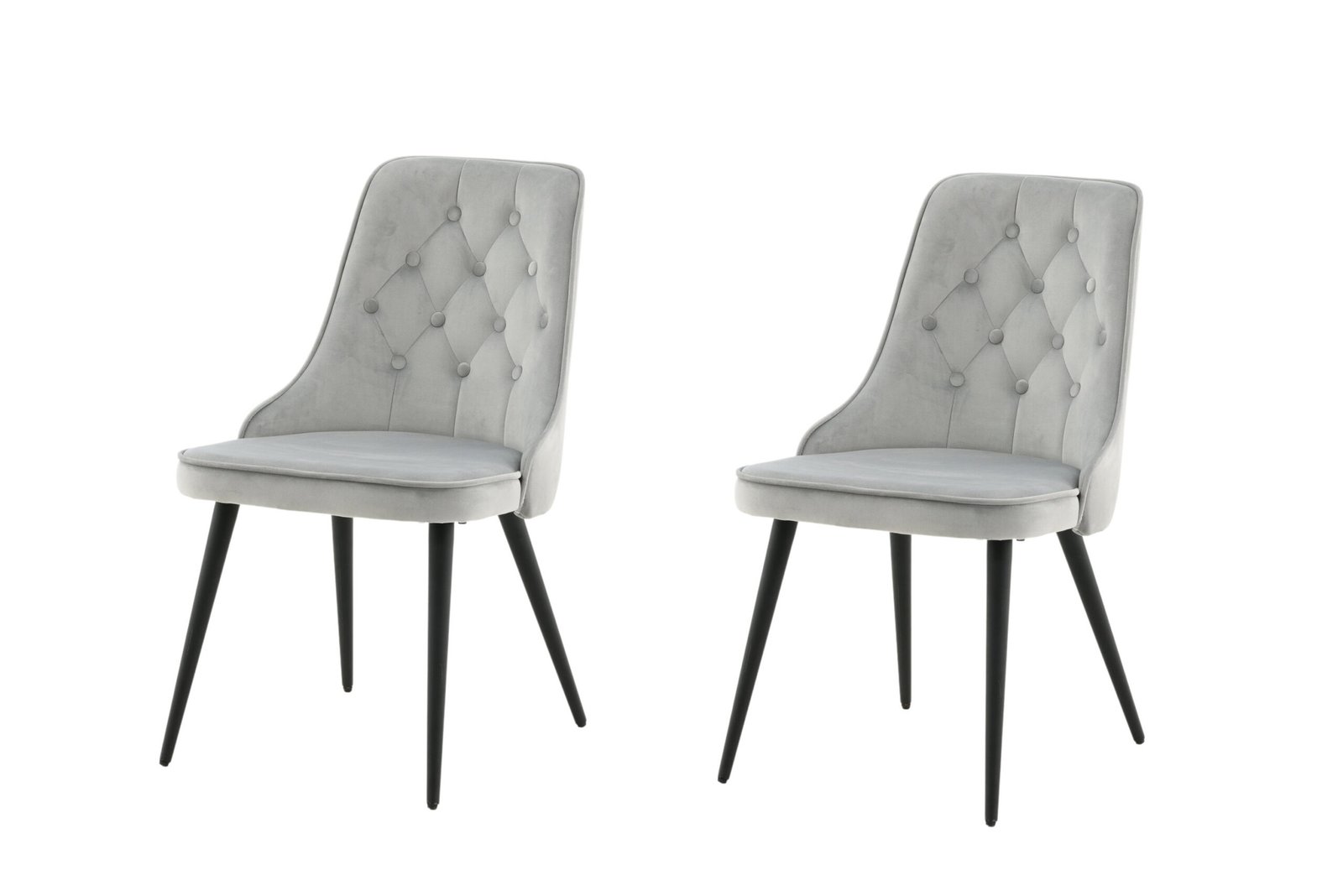 Papuoškite valgomojo erdvę Velvet Luxe kolekcijos valgomojo kėdėmis, kurios tampa elegantišku akcentu interjere. Kėdė pilnai aptraukta glotniu pilkos spalvos aksomu, atlošas dekoruotas sagomis ir dygsniuotomis siūlėmis – tai subtili, stilinga detalė. Kojos pagamintos iš juodai milteliniu būdu dažyto metalo, sėdimoji dalis ir atlošas paminkštinti. Kėdė lengvai surenkama. Joje dera išraiškingas dizainas ir kasdieniam naudojimui tinkama forma.