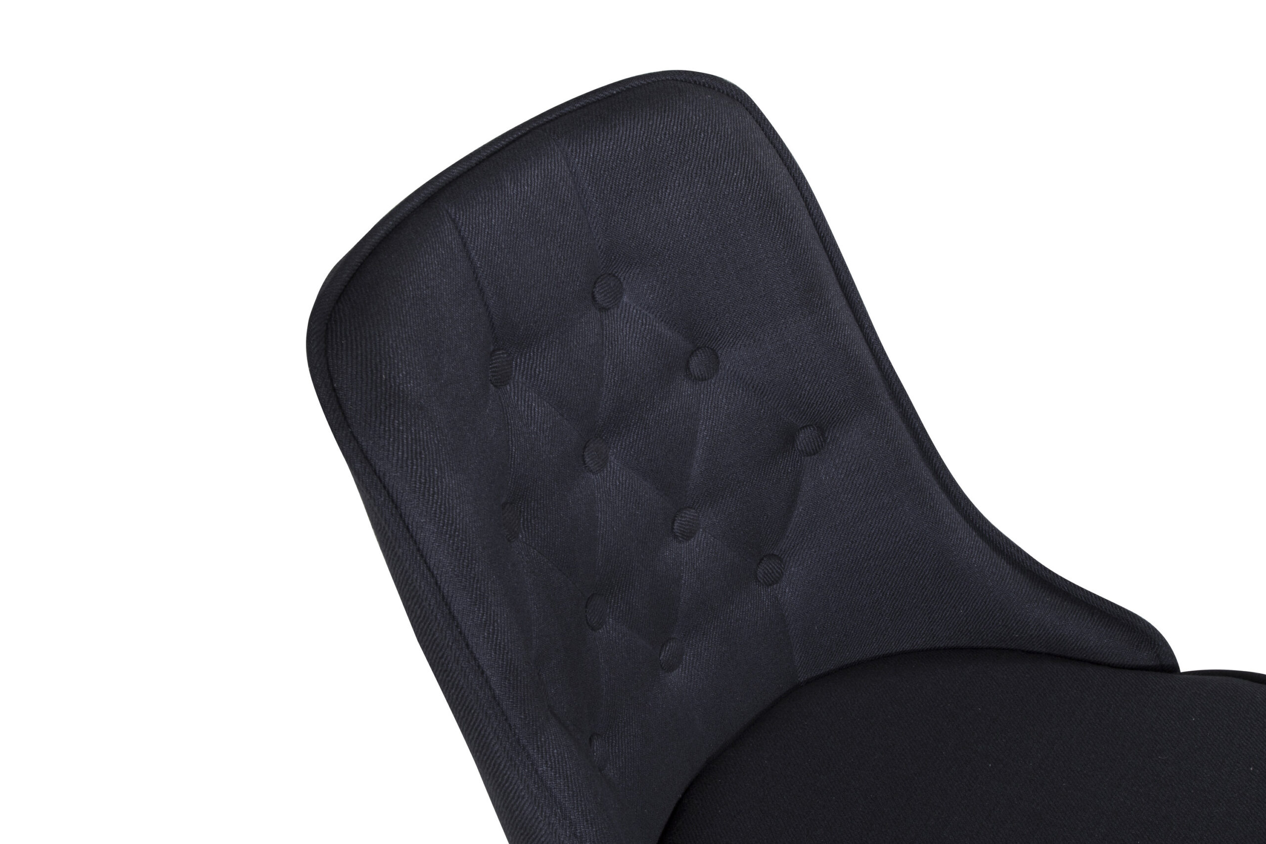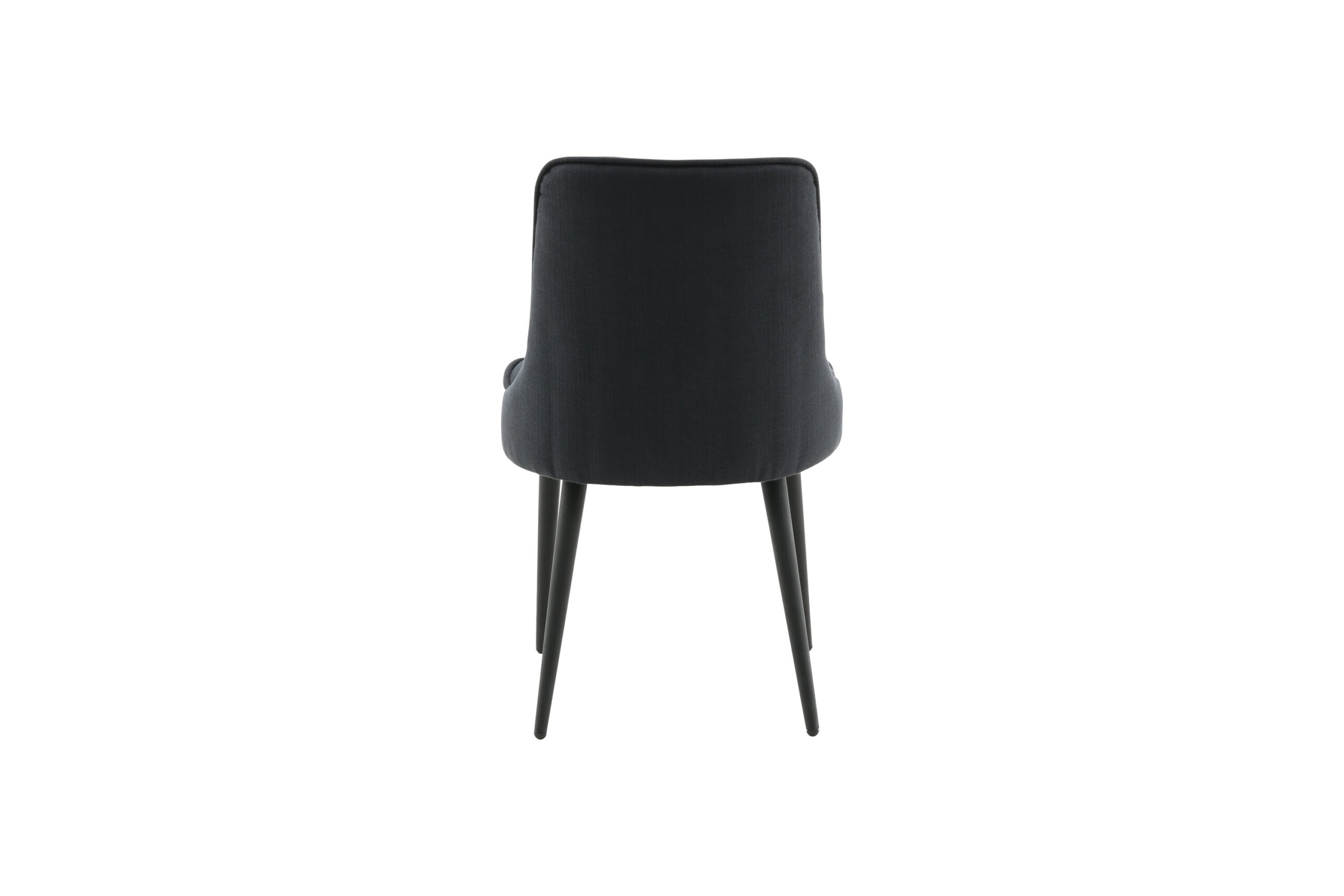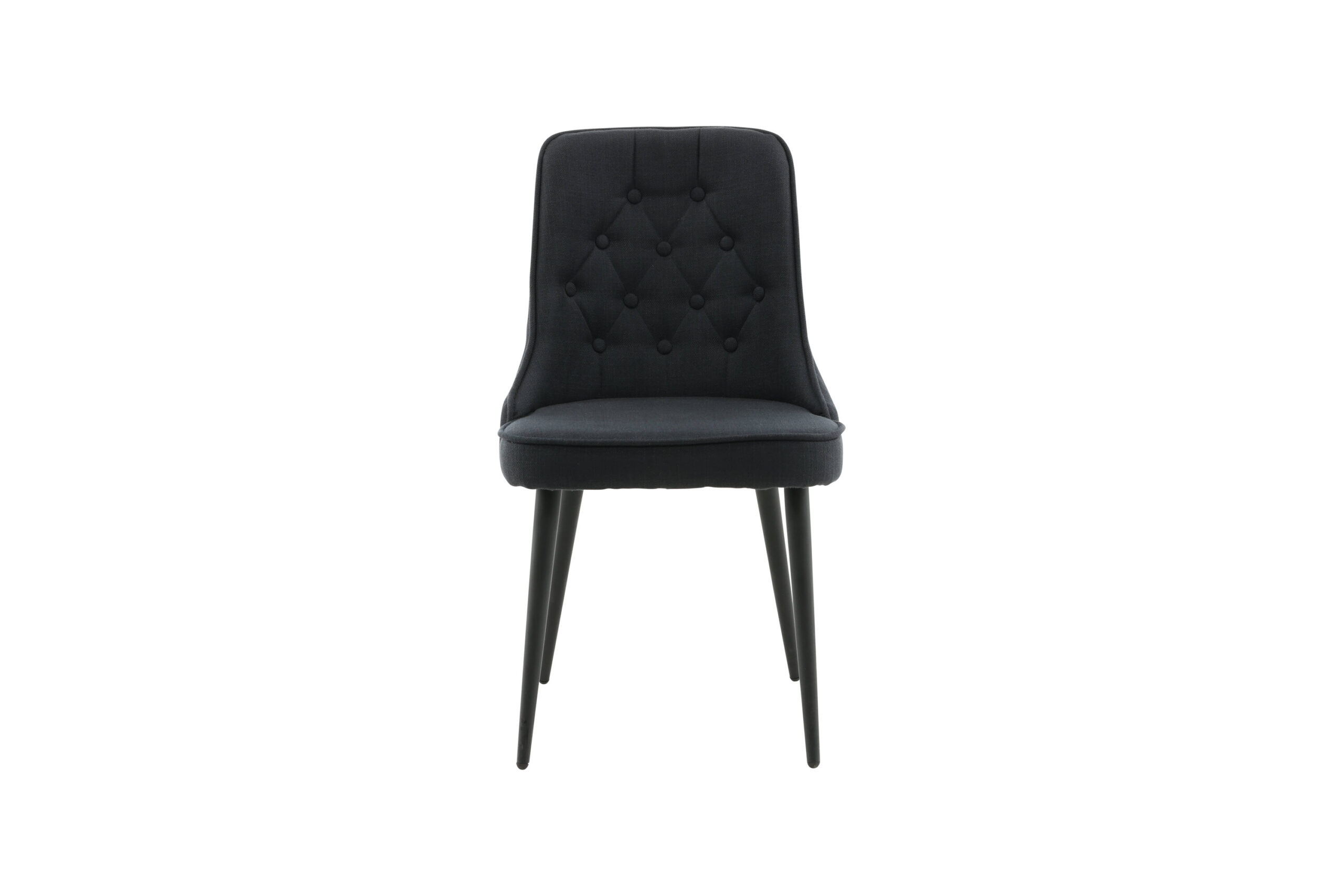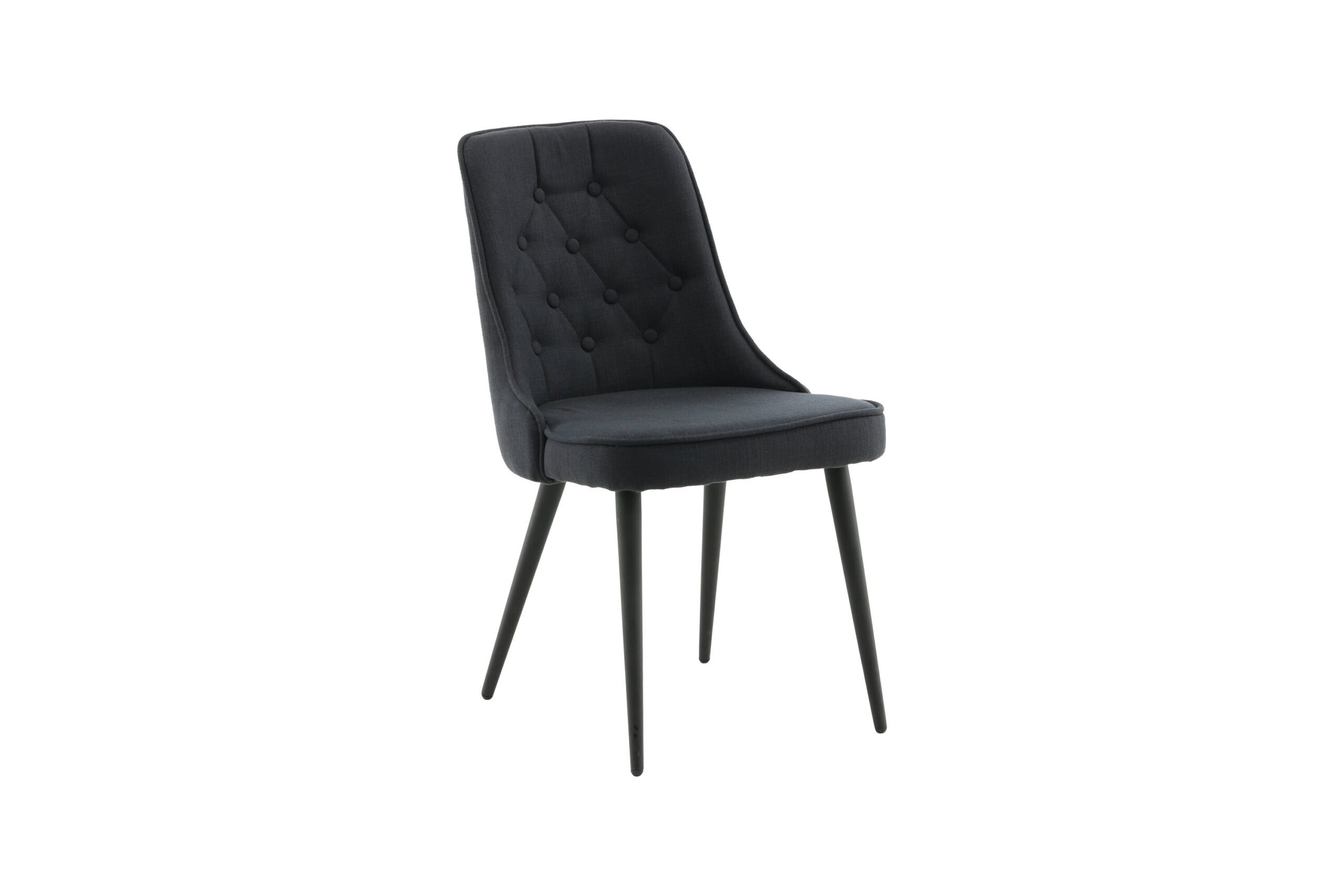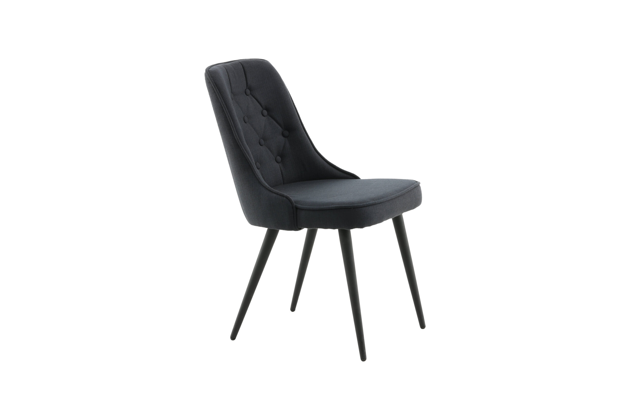 Elegantiškai gyvenamajai erdvei įrengti, naudokite Velvet Luxury kolekcijos valgomojo kėdes ir jos taps dėmesio centru! Kėdė aptraukta elegantišku juodu poliesterio audiniu su sagomis ir dekoratyviniais dygsniais atloše, kurie suteikia stilingumo. Kojos iš juodo milteliniu būdu dengto metalo, o atlošo ir sėdimoji daliss paminkštinimas, suteikia papildomo komforto. Sėdėkite patogiai ir stilingai! Nesudėtingai surenkama.