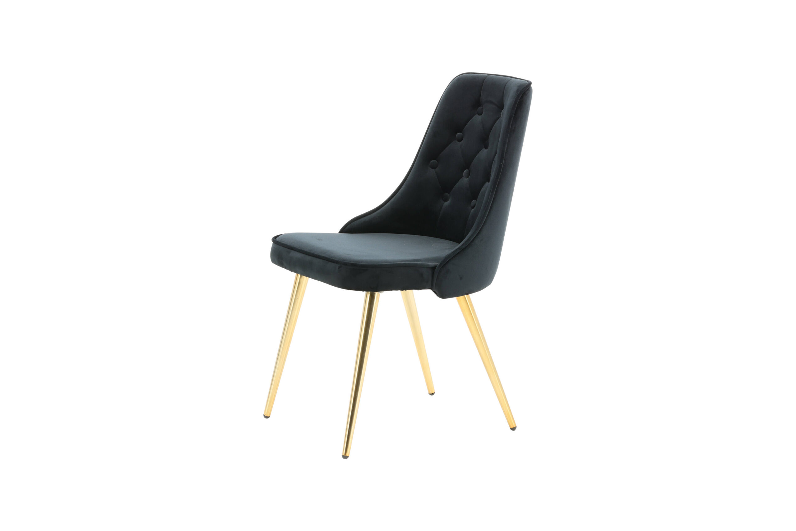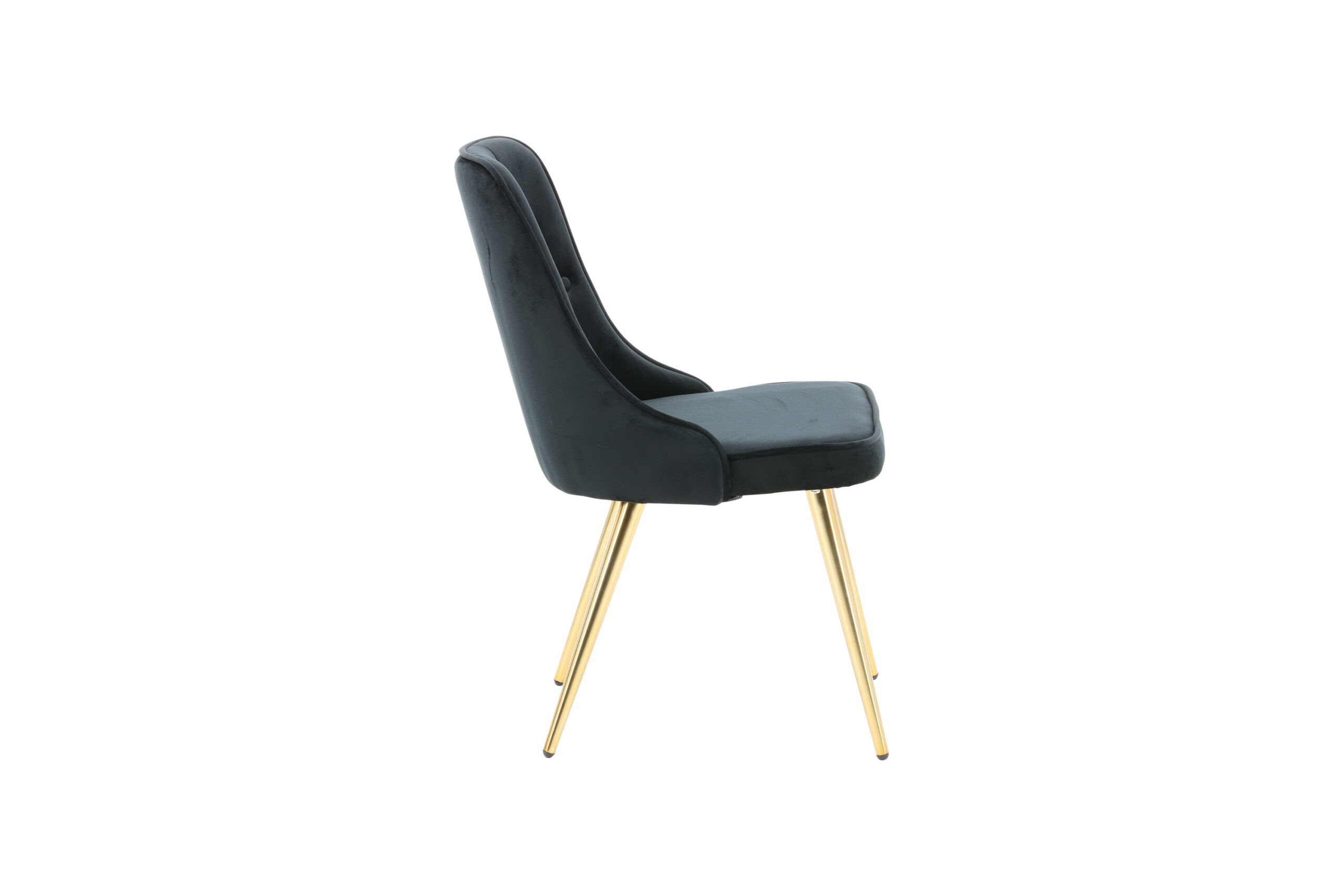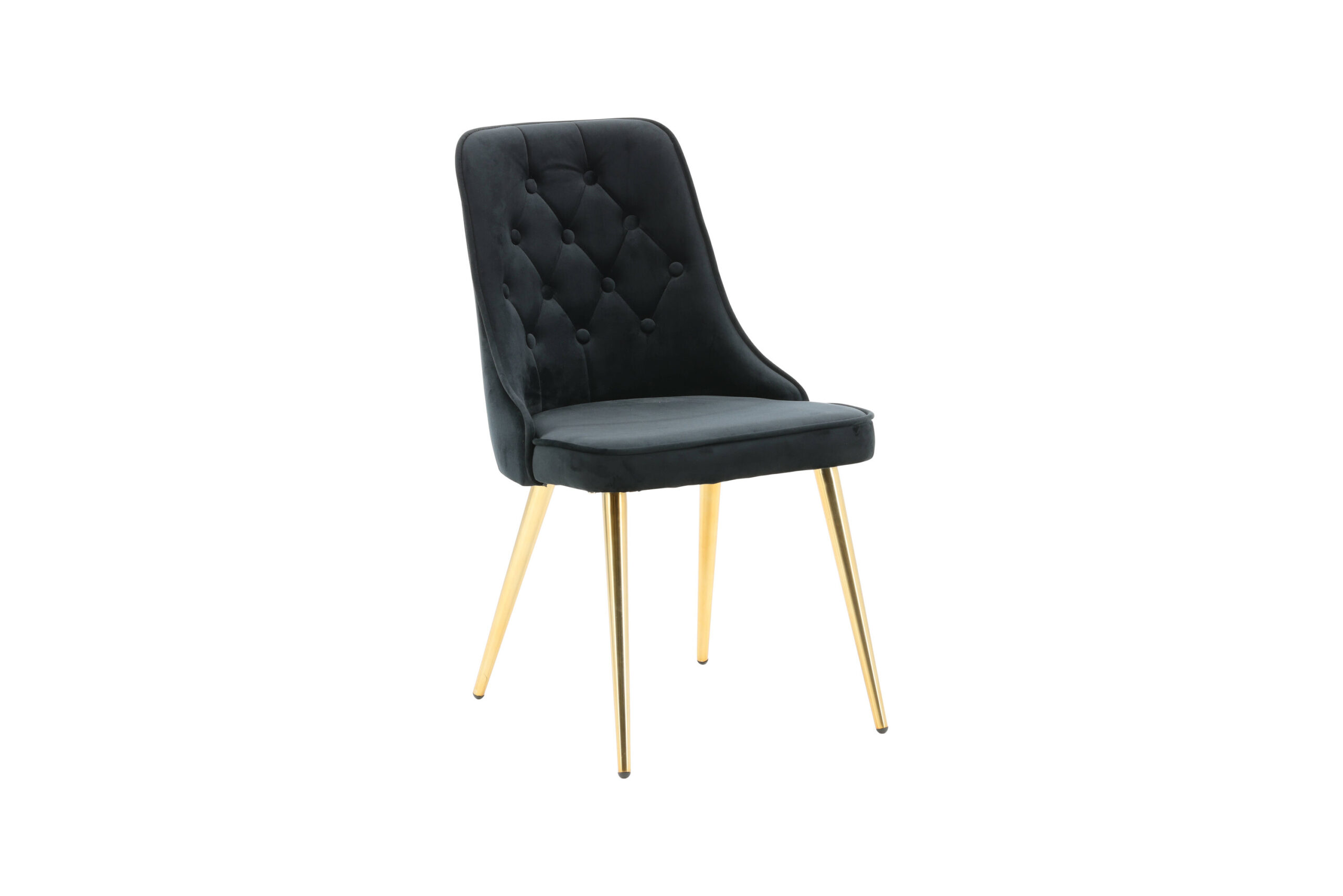 Dekoruokite namus Velvet Luxury kolekcijos valgomojo kėdėmis, kad svetainė būtų elegantiškesnė ir patrauklesnė! Kėdė yra visiškai išbaigto dizaino, aptraukta plonu juodo aksomo audiniu su sagomis ir dekoratyviniu dygsniu nugarėlėje, kuris virsta gražia detale. Kojos iš žalvario, atlošo ir sėdimoji daliss paminkštinimas suteikia papildomo komforto. Sėdėkite patogiai! Lengvai surenkama.