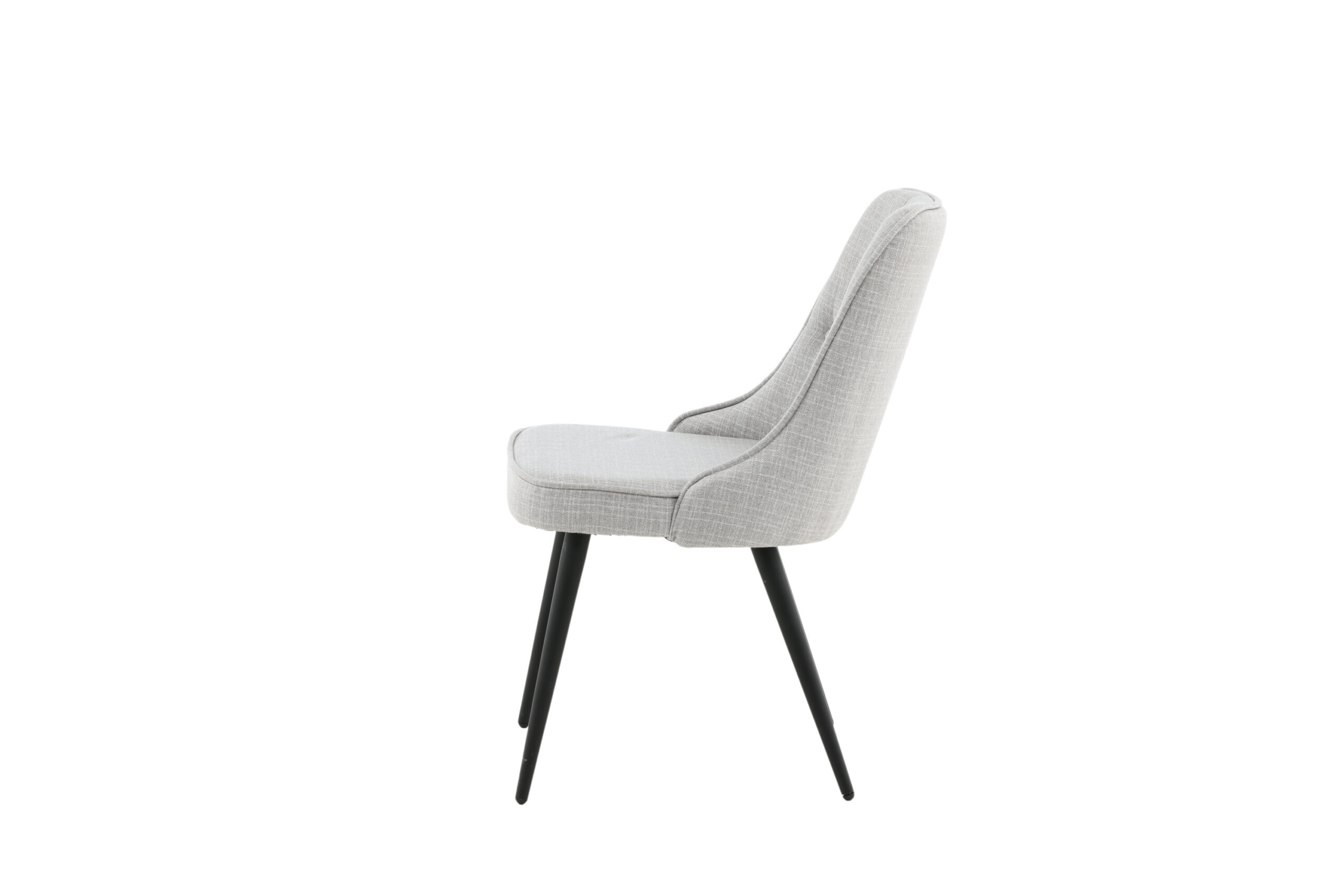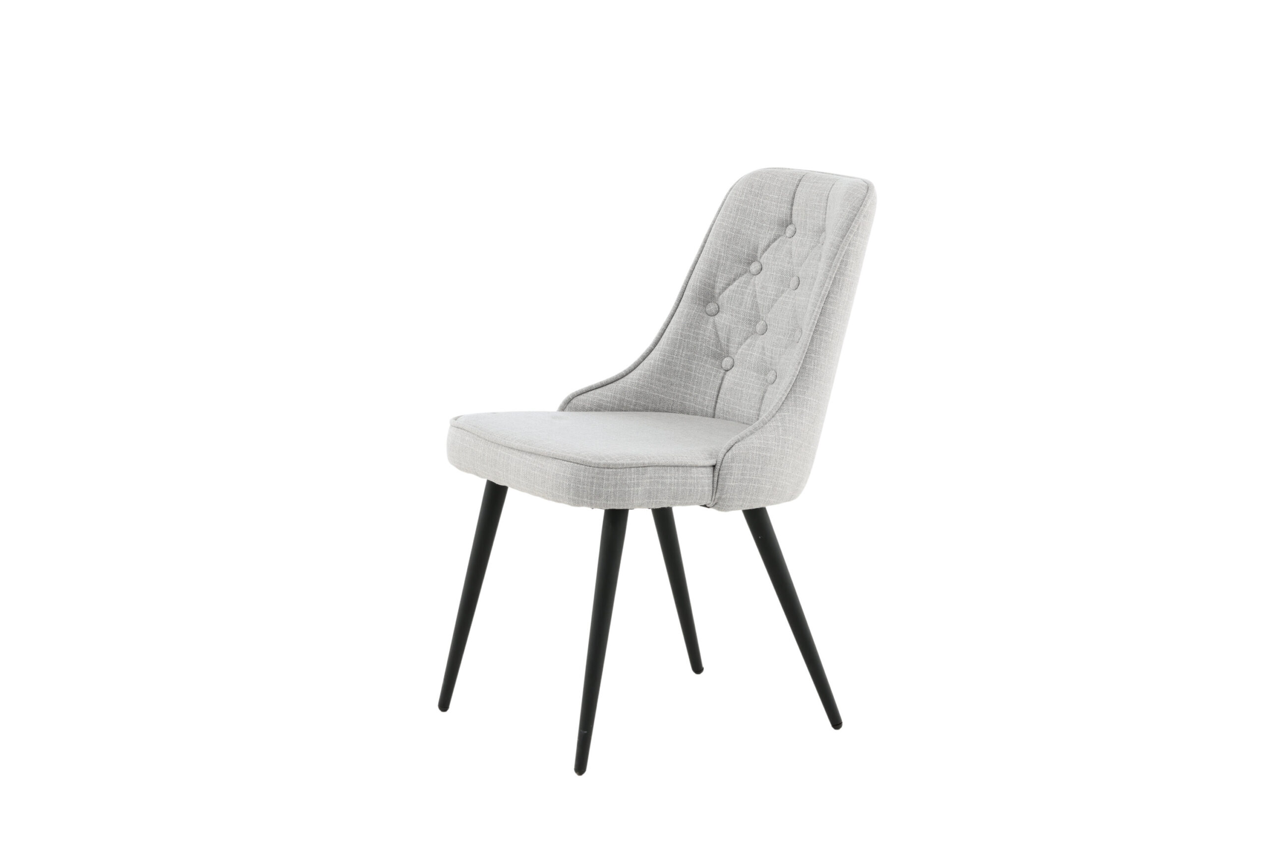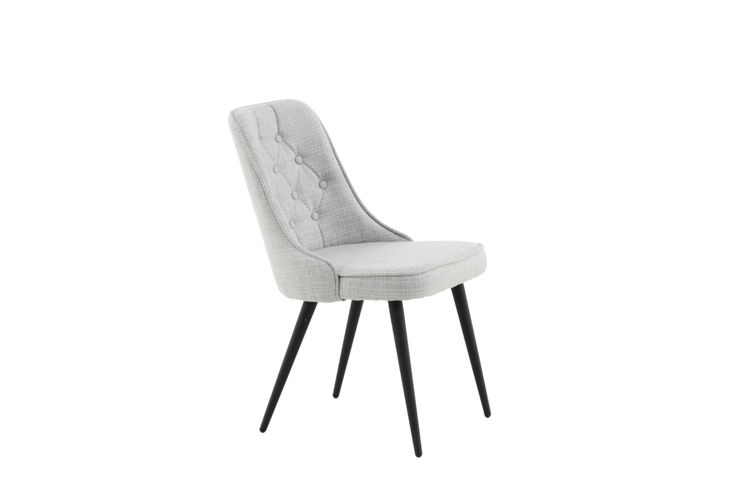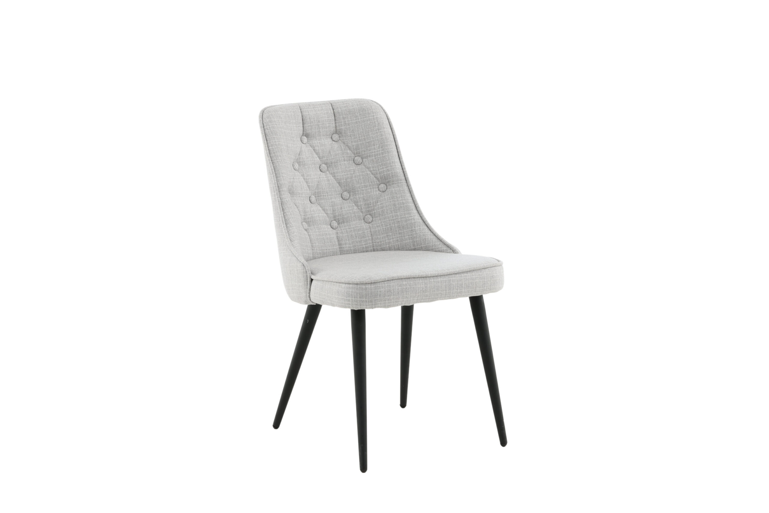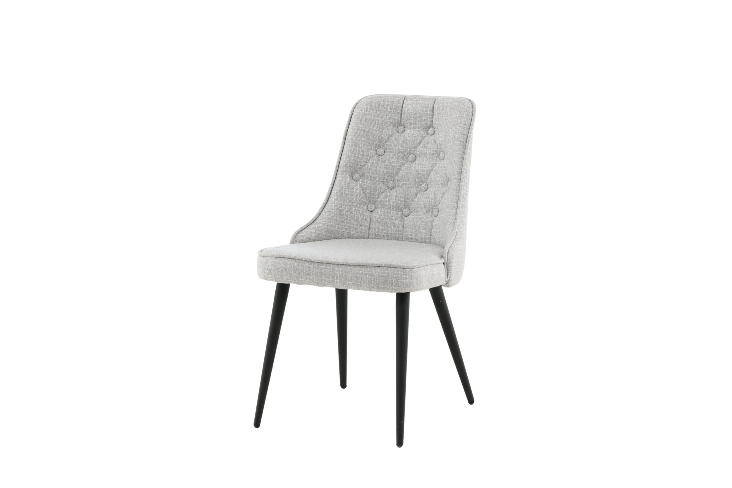 Patogi, stilinga ir patvari valgomojo kėdė iš kolekcijos Velvet Luxury! Kėdė aptraukta plonu pilku poliesterio audiniu su sagomis ir dekoratyviniais dygsniais atloše. Juodos spalvos, milteliniu būdu dažyto metalo kojos, atlošas ir sėdimoji dalis – paminkštintos. Lengvai surenkama. Šios kėdės tikrai taps pompastišku akį traukiančiu akcentu svetainėje!