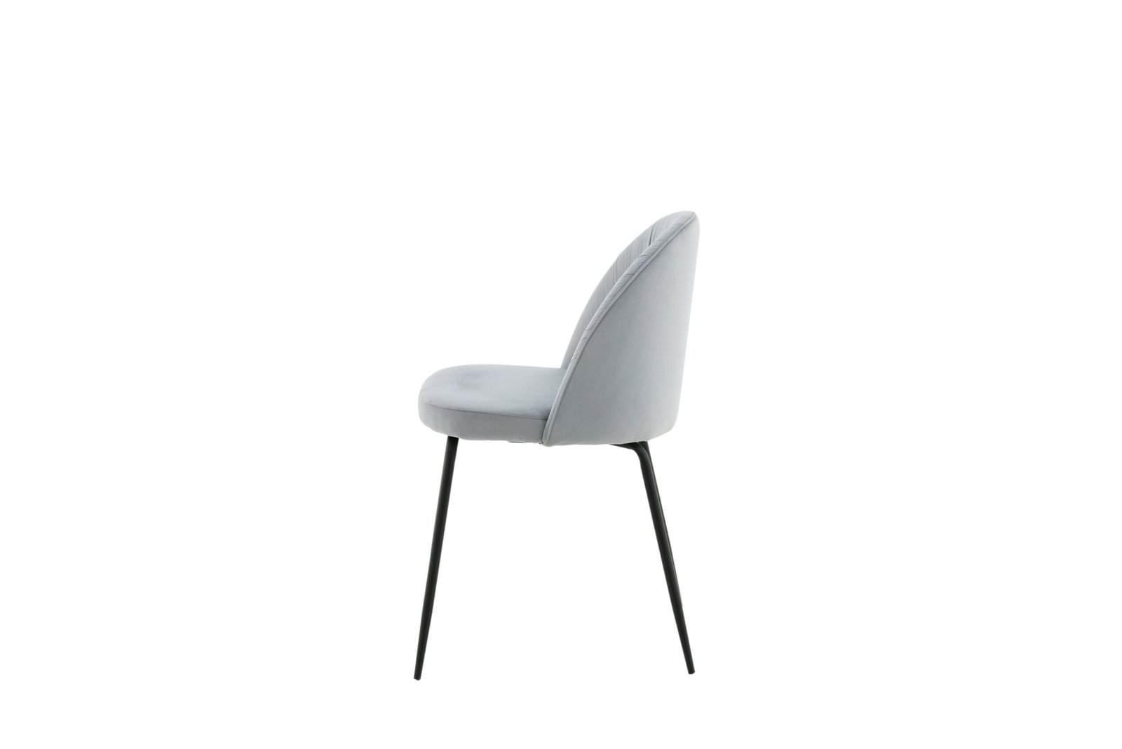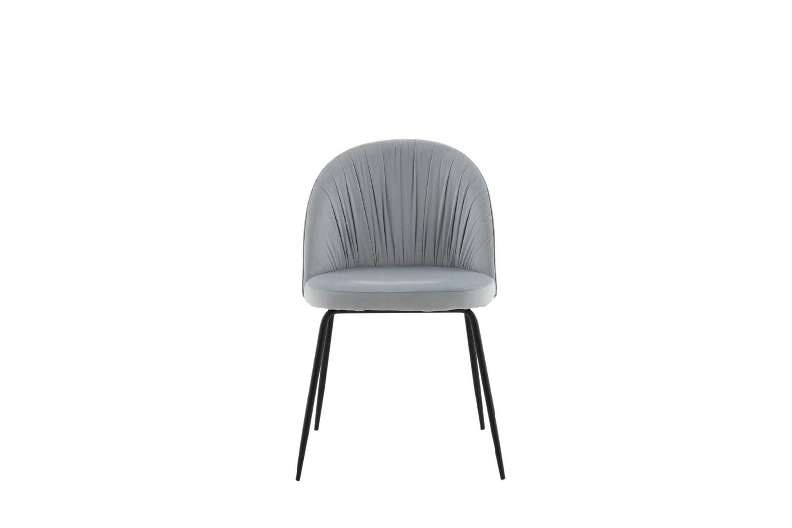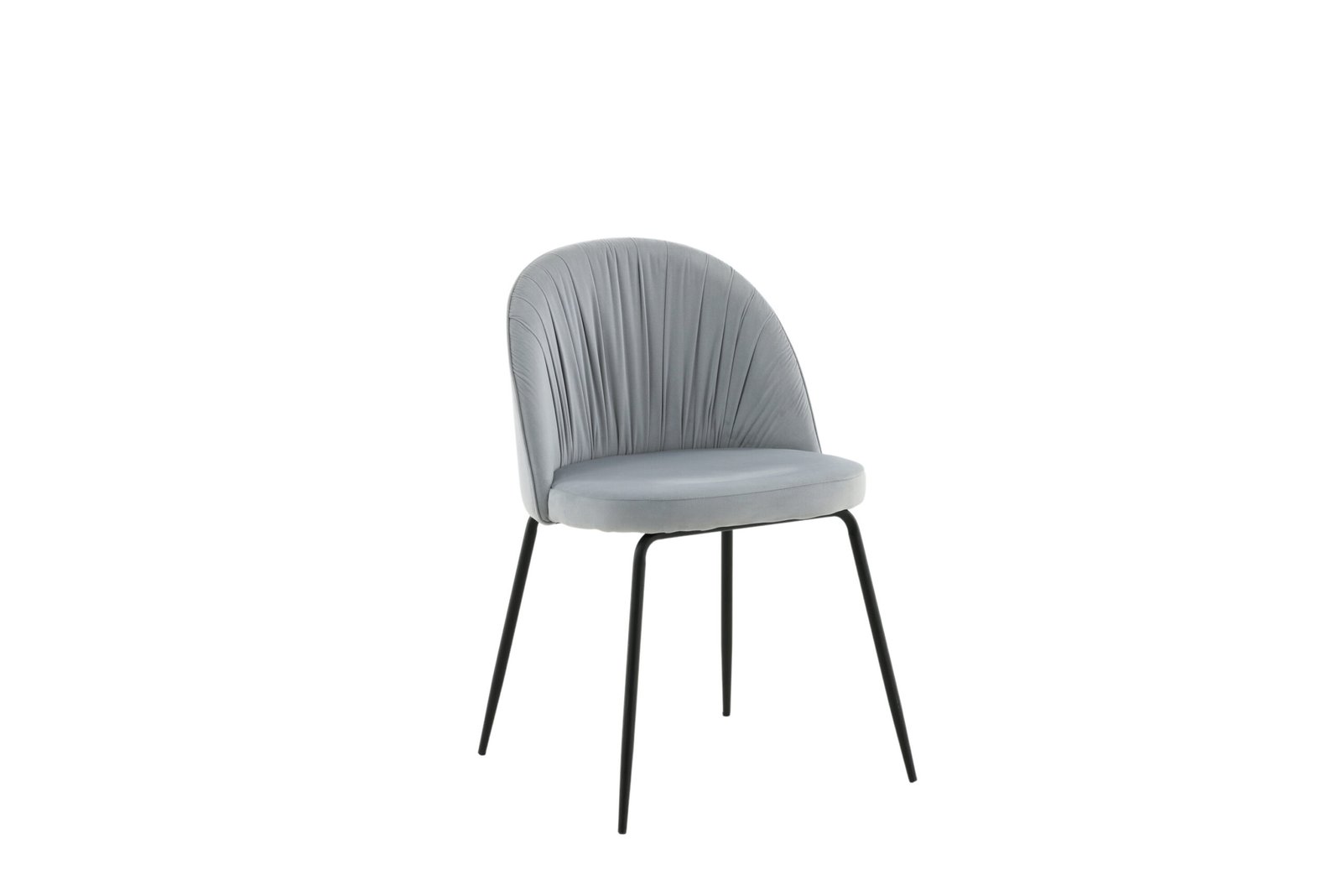 Moderni kėdė, kurios nusipelno kiekvienas - patogi, stilinga ir šiuolaikiška! Valgomojo kėdė Wrinkles yra išskirtinio dizaino, juodos spalvos milteliniu būdu dažyto metalo kojomis. Suapvalintas atlošas ir sėdimoji dalis su paminkštinimu, aptraukti rauktu pilko aksomo audiniu, kuris sukuria stilingą ir patrauklią visumą. Lengvai surenkama.