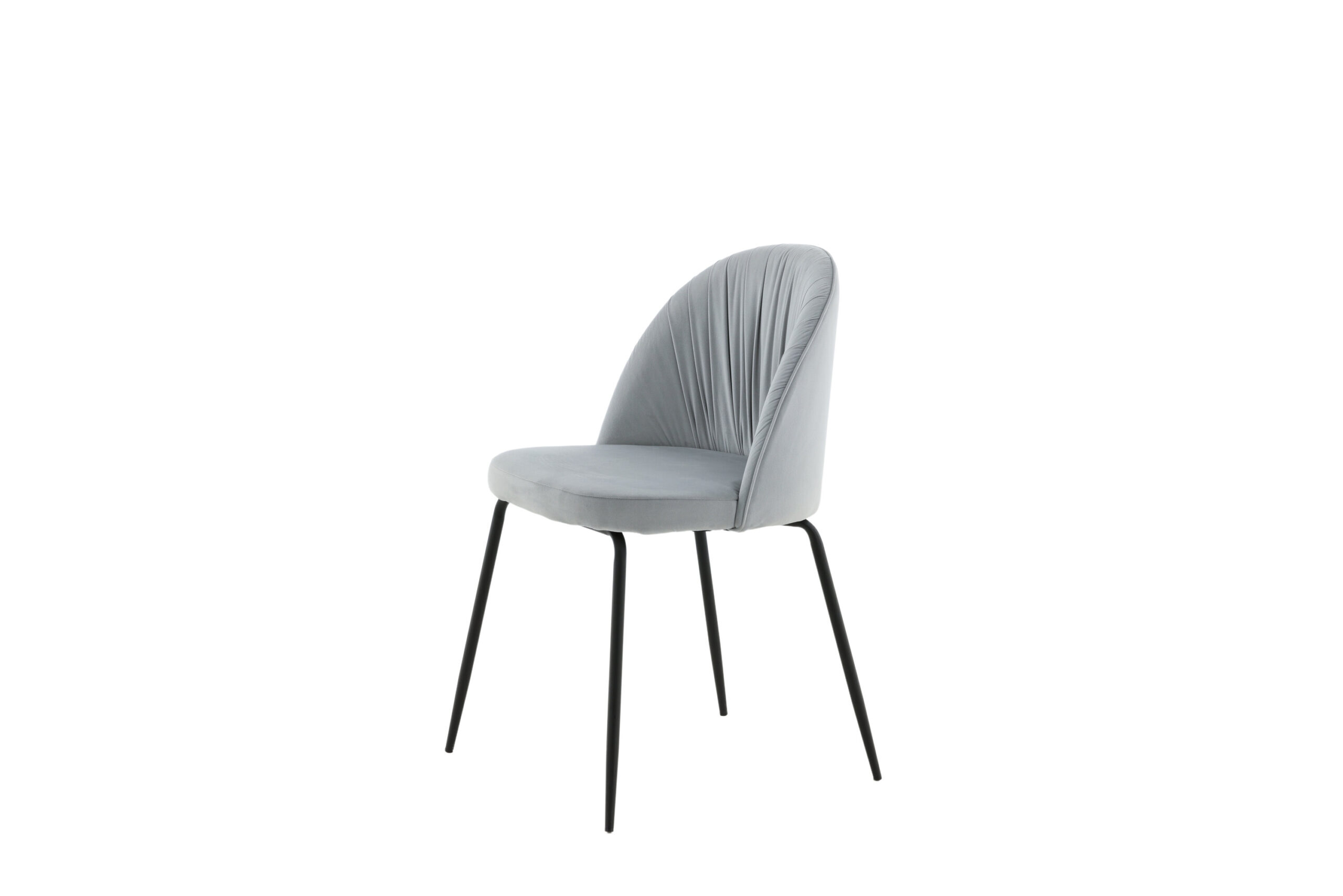 Moderni kėdė, kurios nusipelno kiekvienas - patogi, stilinga ir šiuolaikiška! Valgomojo kėdė Wrinkles yra išskirtinio dizaino, juodos spalvos milteliniu būdu dažyto metalo kojomis. Suapvalintas atlošas ir sėdimoji dalis su paminkštinimu, aptraukti rauktu pilko aksomo audiniu, kuris sukuria stilingą ir patrauklią visumą. Lengvai surenkama.